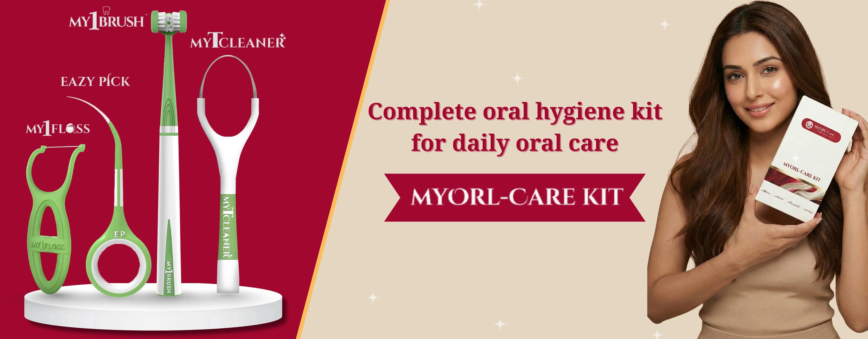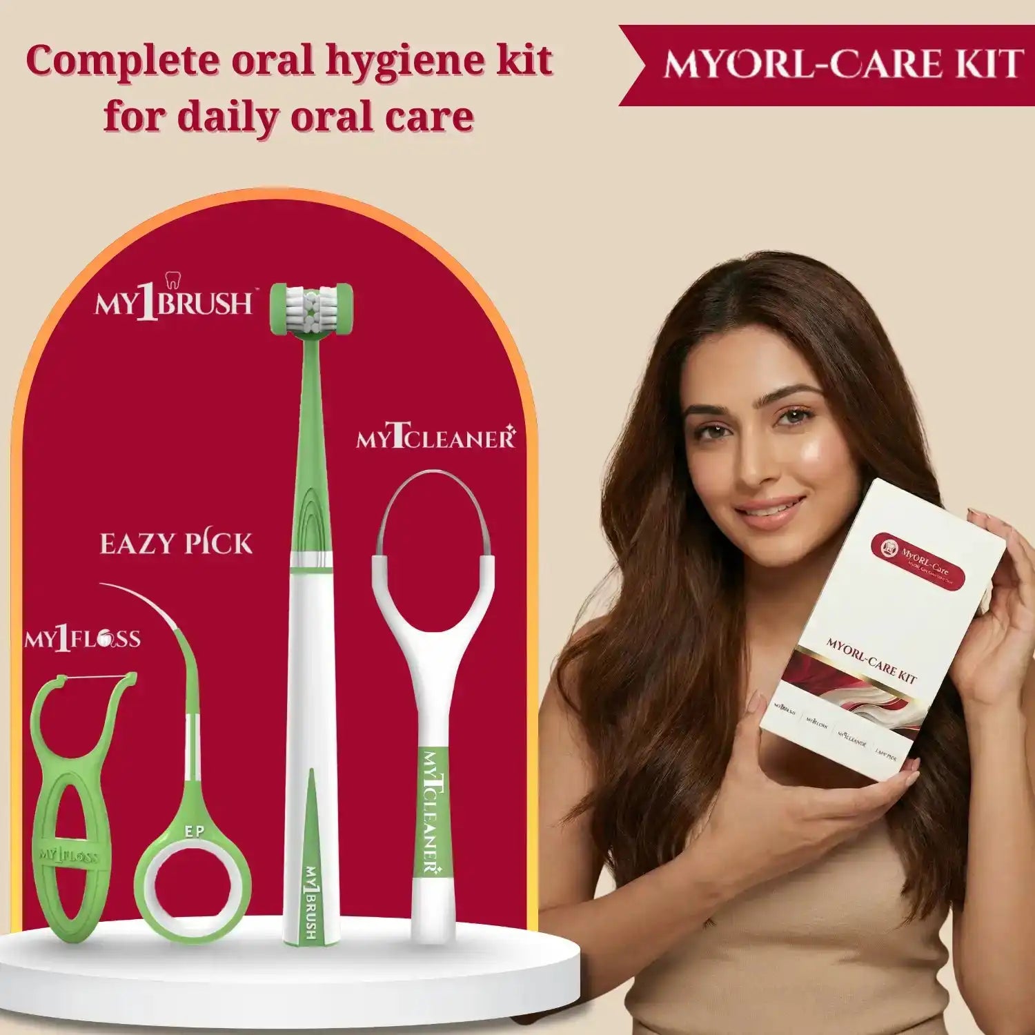MyOrl-Care Kit (3-Sided Toothbrush, Floss Picks, Tongue Cleaner, Toothpicks)