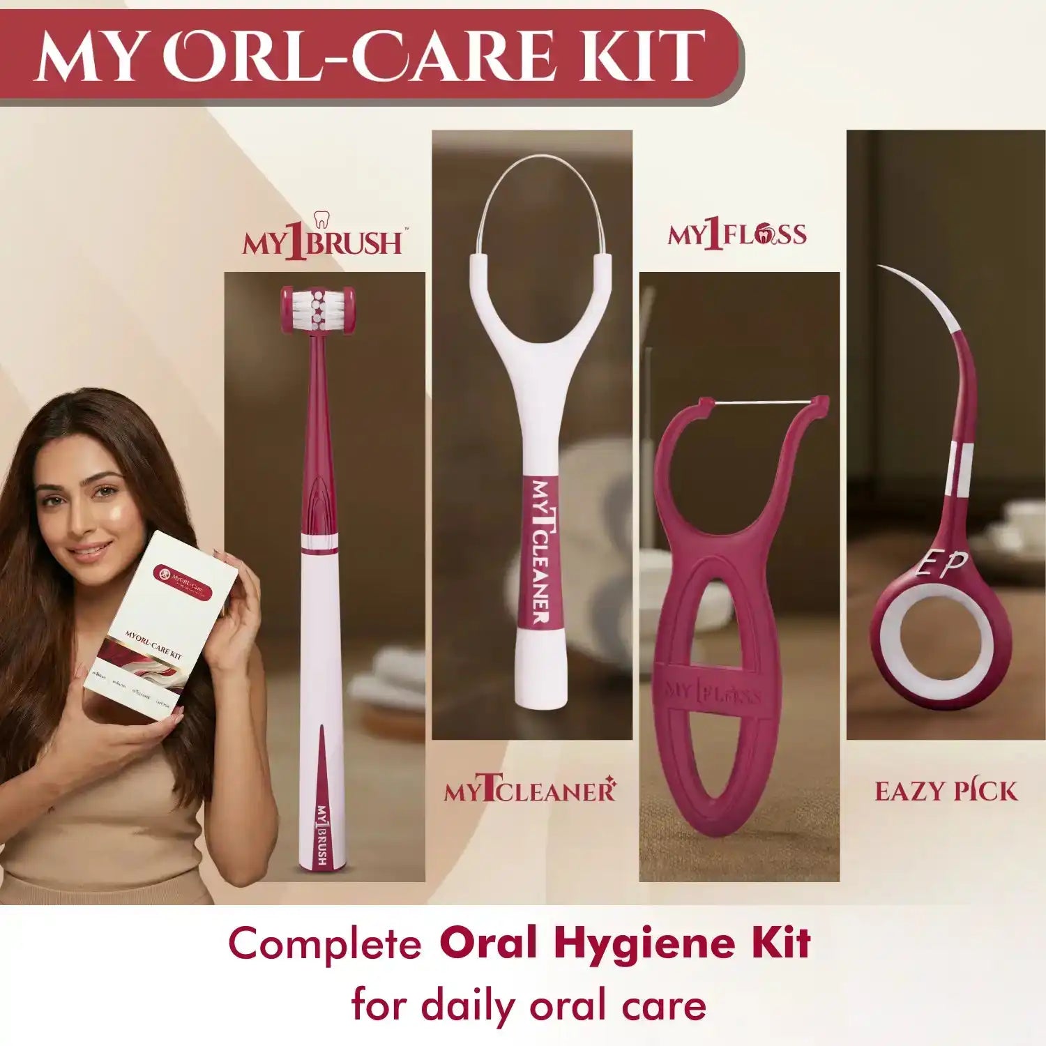 MyOrl-Care Kit (3-Sided Manual Toothbrush, Floss Picks, Tongue Cleaner, Toothpicks)