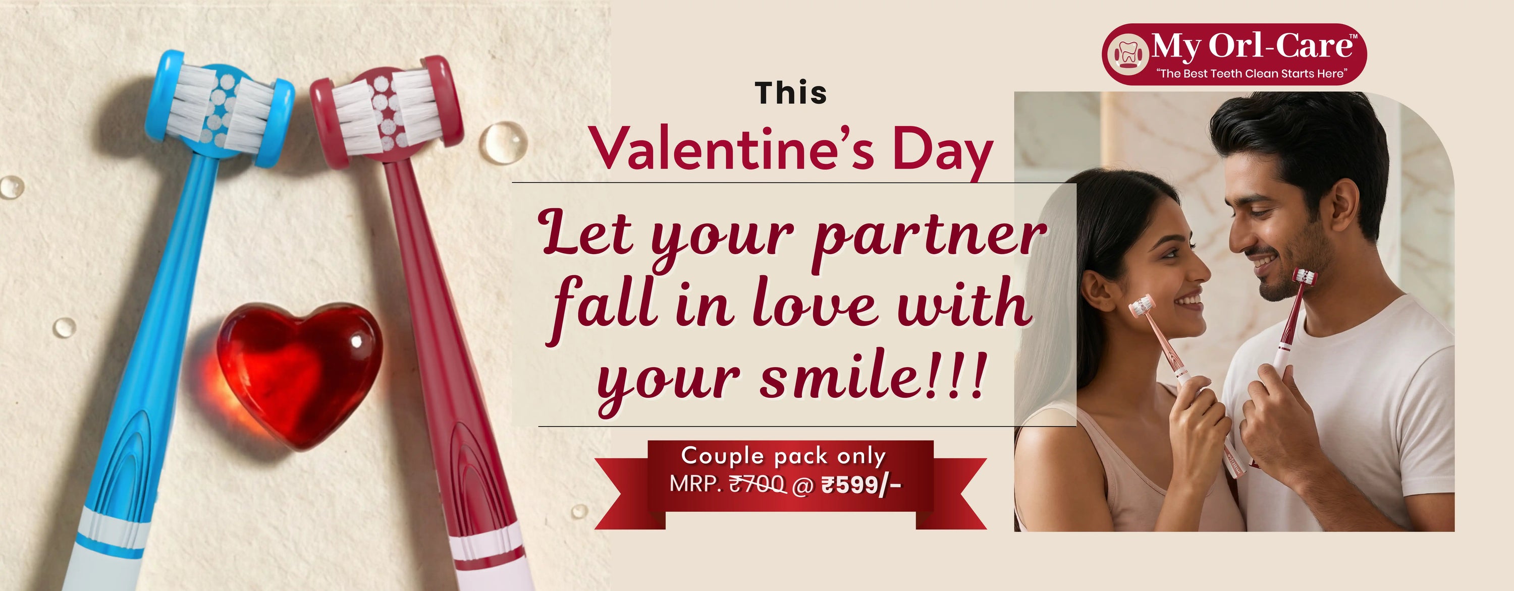 My1Brush - Couple Pack | World's First 3 Sided Insta Clean Manual Toothbrush