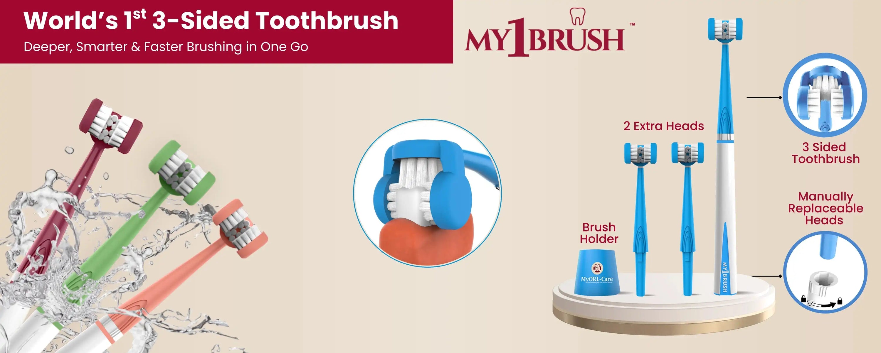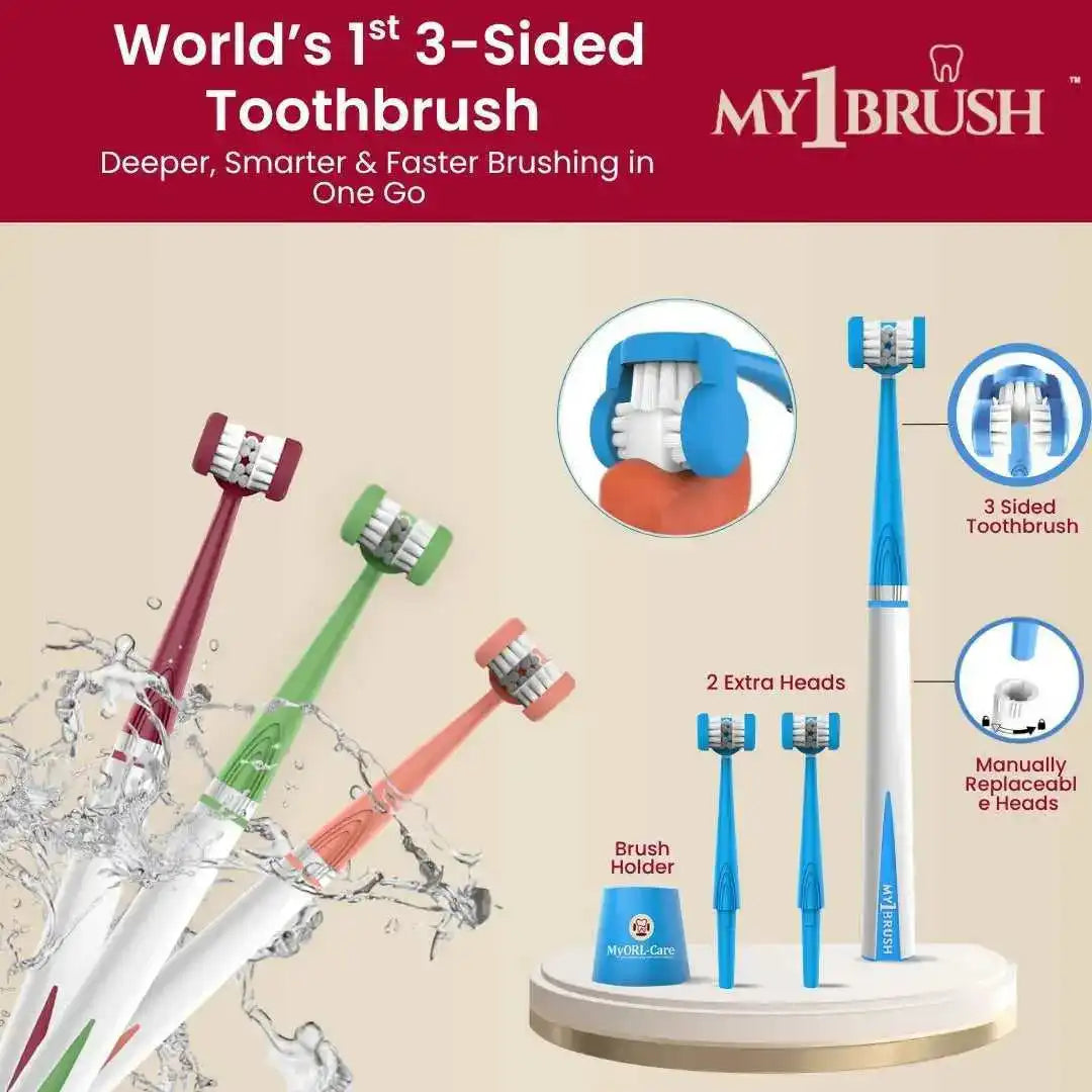 Combo - My1Brush (3 Sided Toothbrush + MyTCleaner ( Tongue Cleaner)