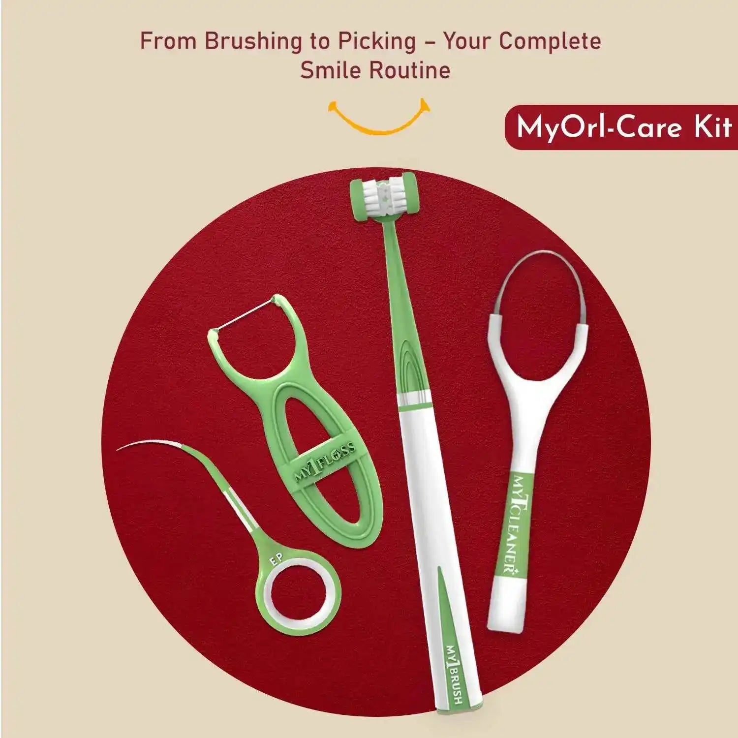 MyOrl-Care Kit (3-Sided Toothbrush, Floss Picks, Tongue Cleaner, Toothpicks)