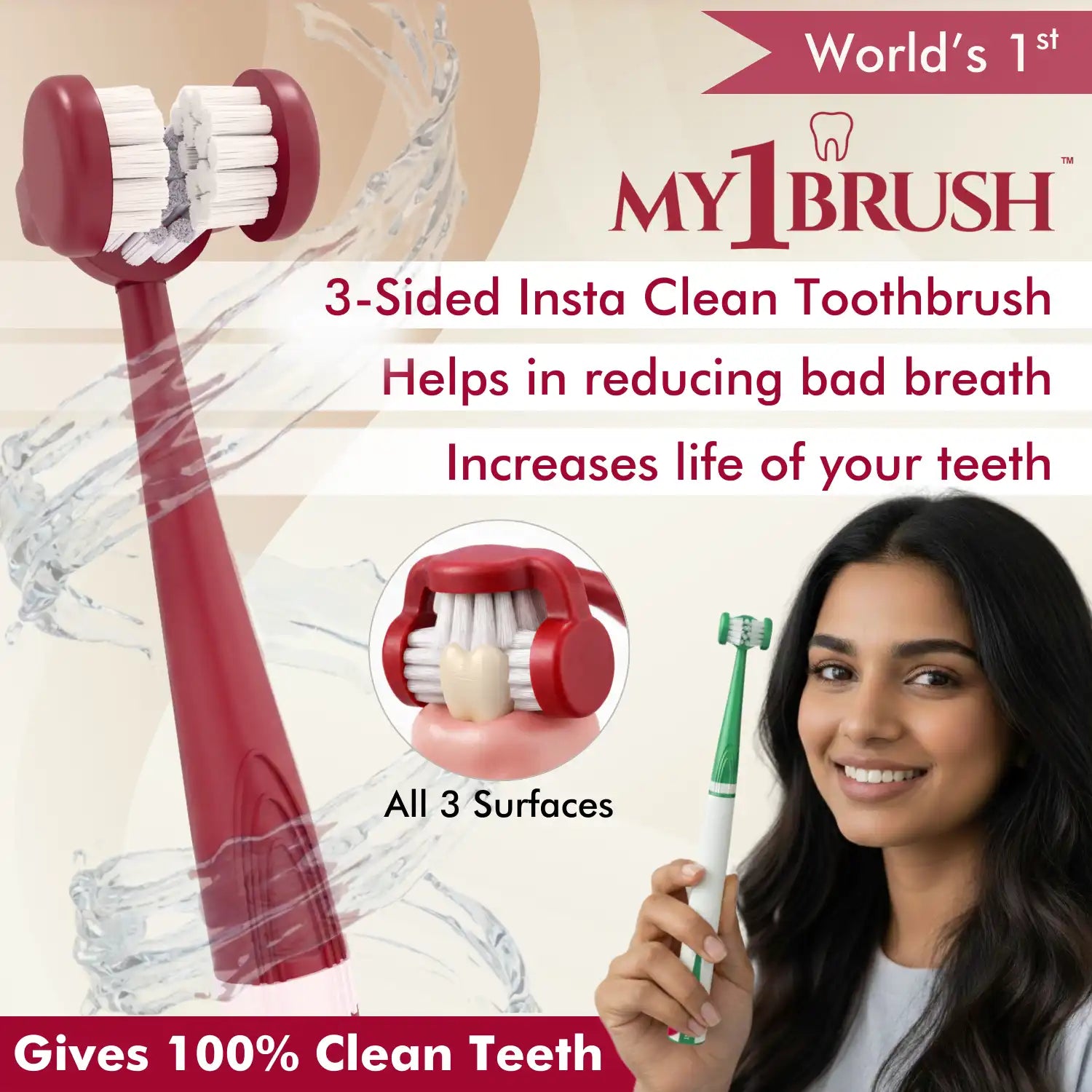 My1Brush - Trial Pack | World's First 3 Sided Insta Clean Manual Toothbrush