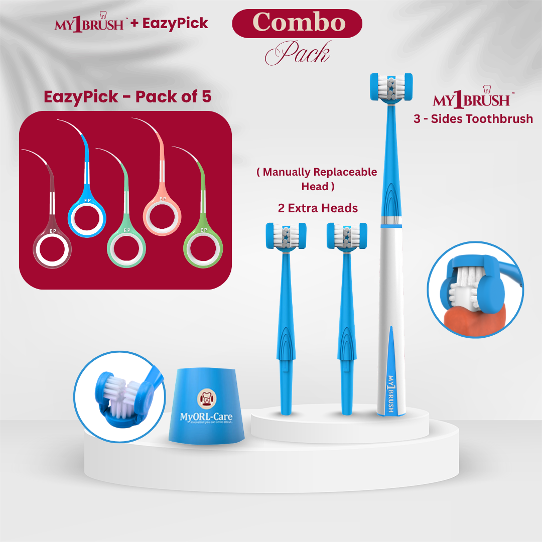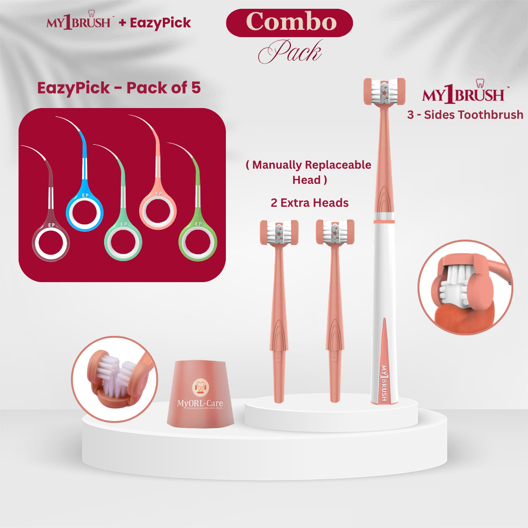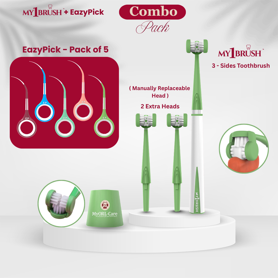 Combo - My1Brush (3 Sided Toothbrush) + Eazypick (Toothpicks)