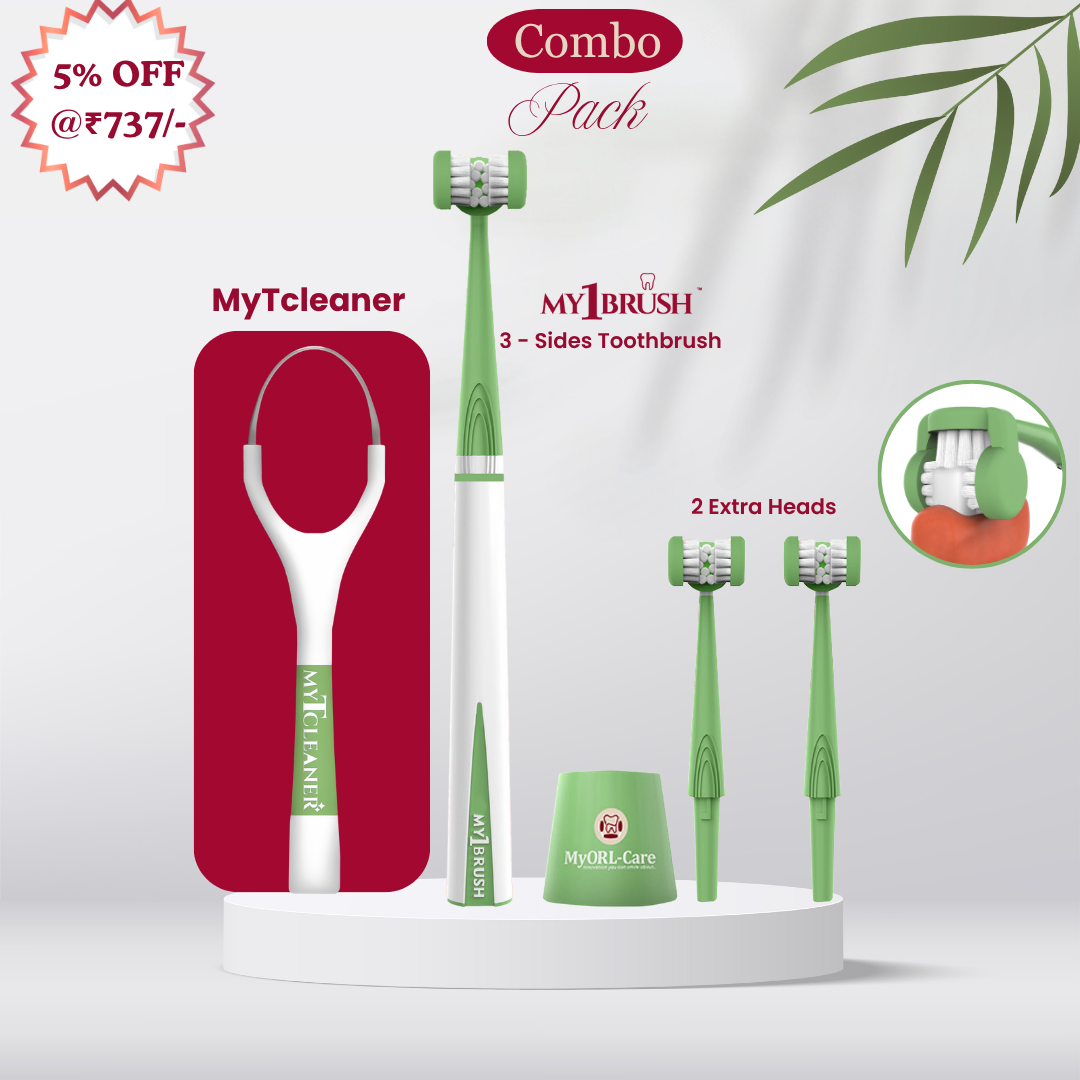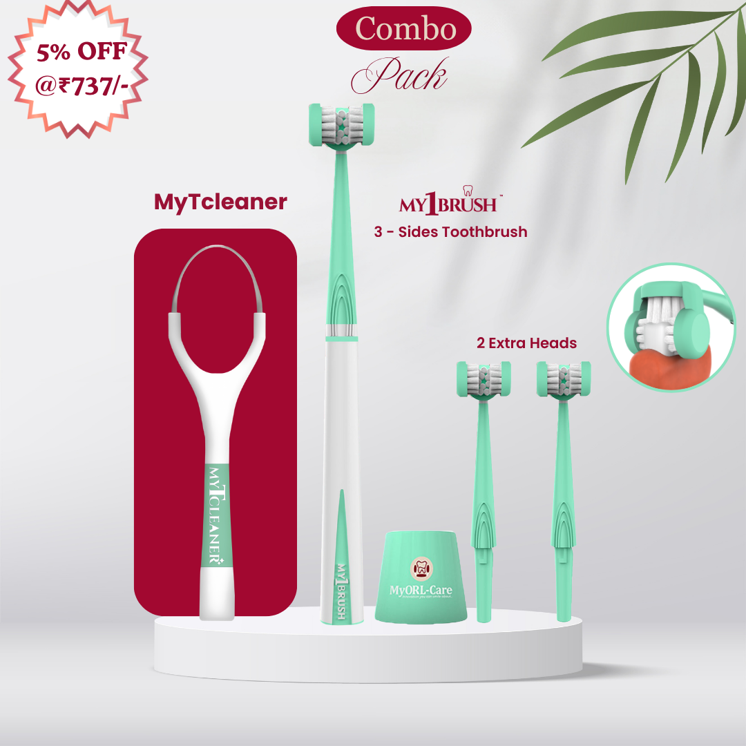 Combo - My1Brush (3 Sided Toothbrush + MyTCleaner (Tounge Cleaner)