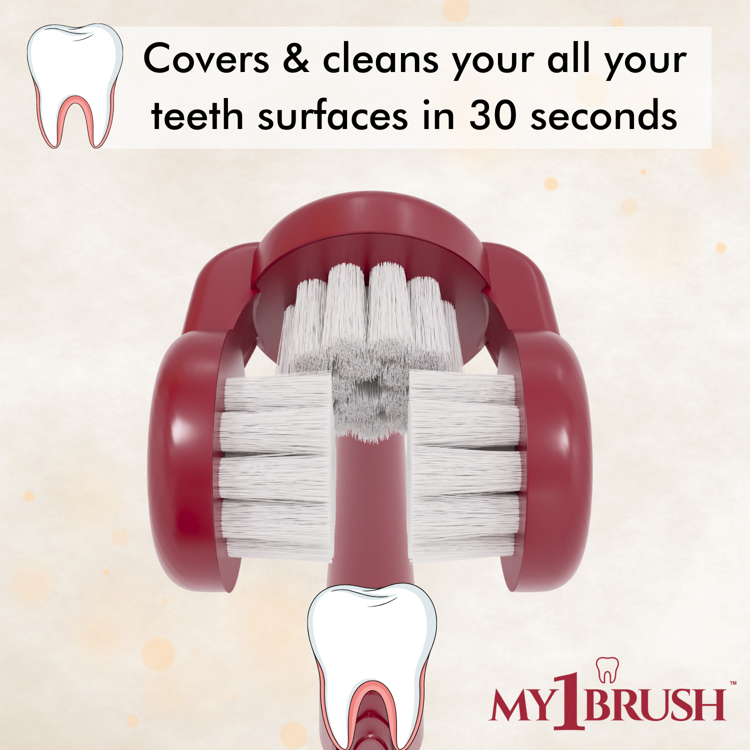 Unlike regular toothbrushes, My1Brush covers the front, top, and inner surfaces simultaneously—giving you a complete clean in just 30 seconds.