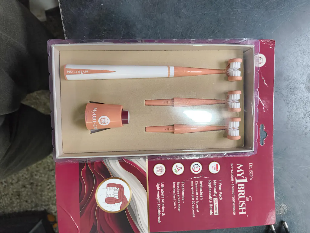 I have started using My1Brush from last Sunday but I feel happy to clean my teeth from all 3 sides at a time. Initially facing difficulties in using My1Brush but I am sure this will be overcome.